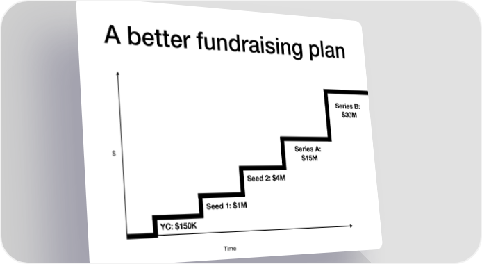 A better fundraising plan Series B: $30M $ Series A: $15M Seed 2: $4M Seed 1: $1M YC: $150K Time
