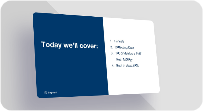 1. Funnels Today we’ll cover: 2. Collecting Data 3. Top 3 Metrics + PMF Methodology 4. Best in class tools