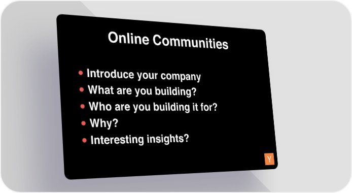 Online Communities Introduce your company • • What are you building? • Who are you building it for? • Why? • Interesting insights?