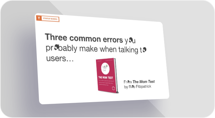 Three common errors you probably make when talking to users… From The Mom Test by Rob Fitzpatrick